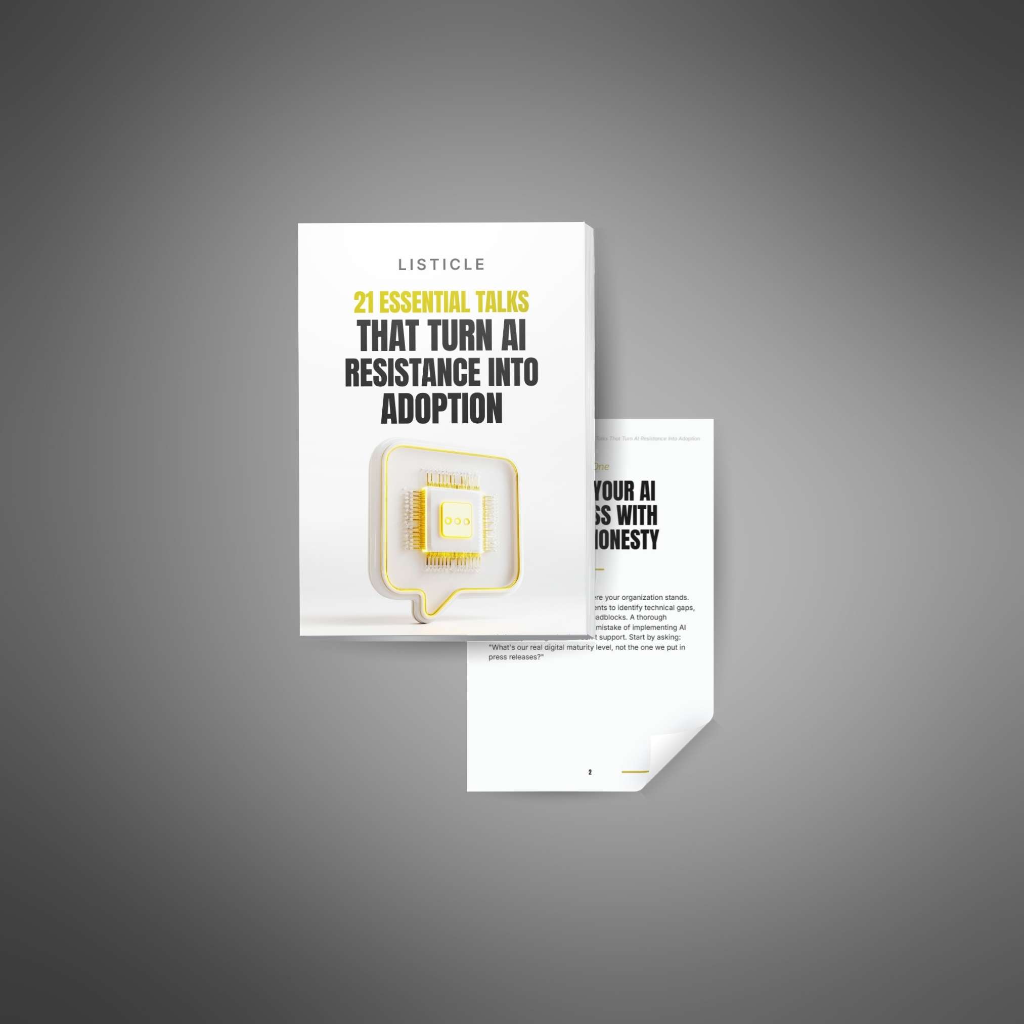 Offer your customers a practical, digestible asset that brings immediate value to your audience. This listicle is ideal for building trust, reducing fear, and positioning yourself as a helpful guide in the journey toward successful AI adoption.