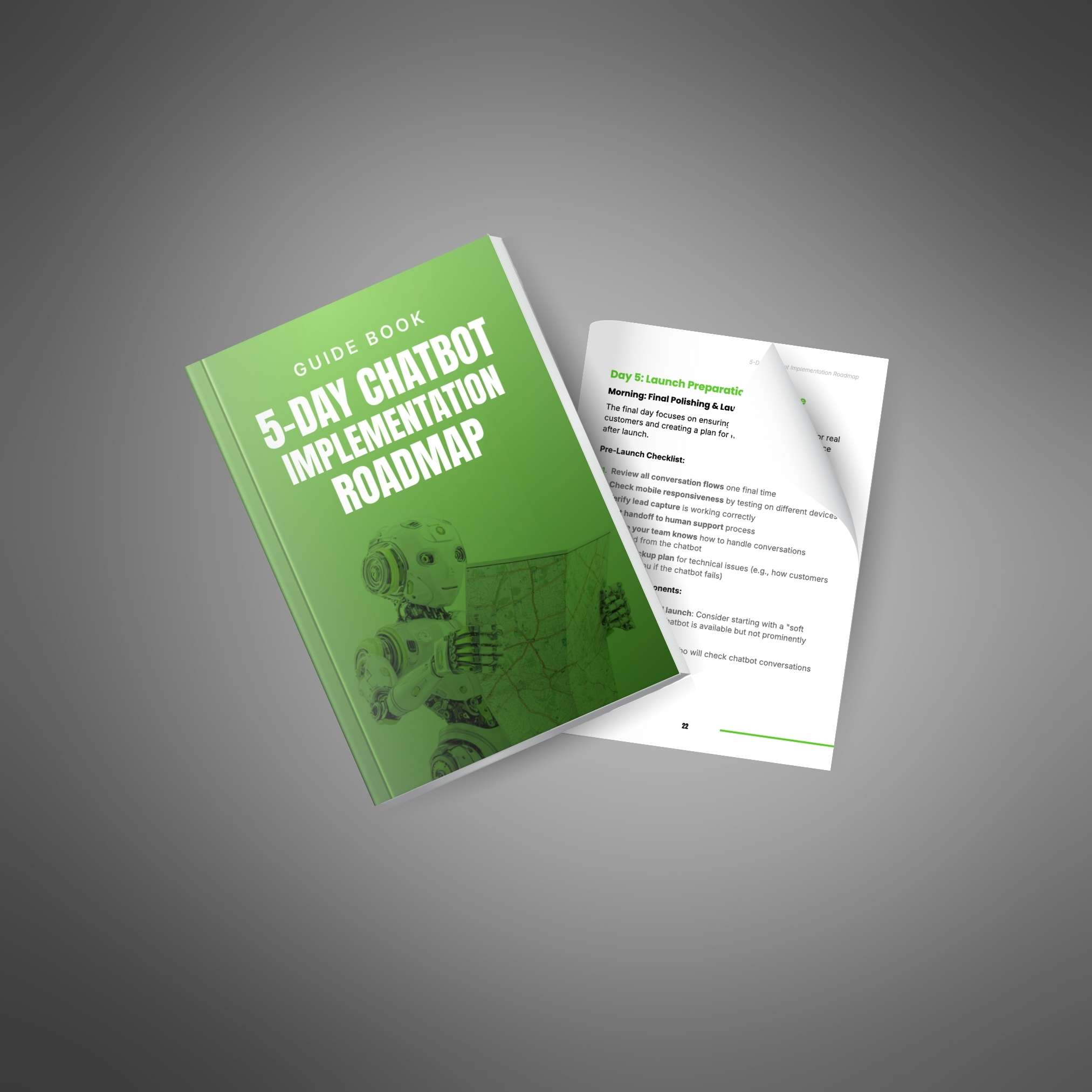 This guide helps your customers set up a working chatbot in just five days by walking them through simple, clear steps for planning, building, testing, and launching. It breaks down a big project into small, daily tasks so businesses can save time, answer questions faster, and get more leads.