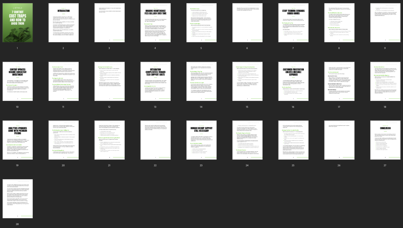 This listicle is a ready-to-use content asset designed to quickly educate, engage, and qualify your audience with skimmable, high-value insights. It’s perfect for resellers who want to offer a practical lead magnet that builds awareness around hidden chatbot costs without overwhelming the reader. With a clear, focused structure and 7 smart tips, it shows your customers how to avoid mistakes that waste time, money, and trust.