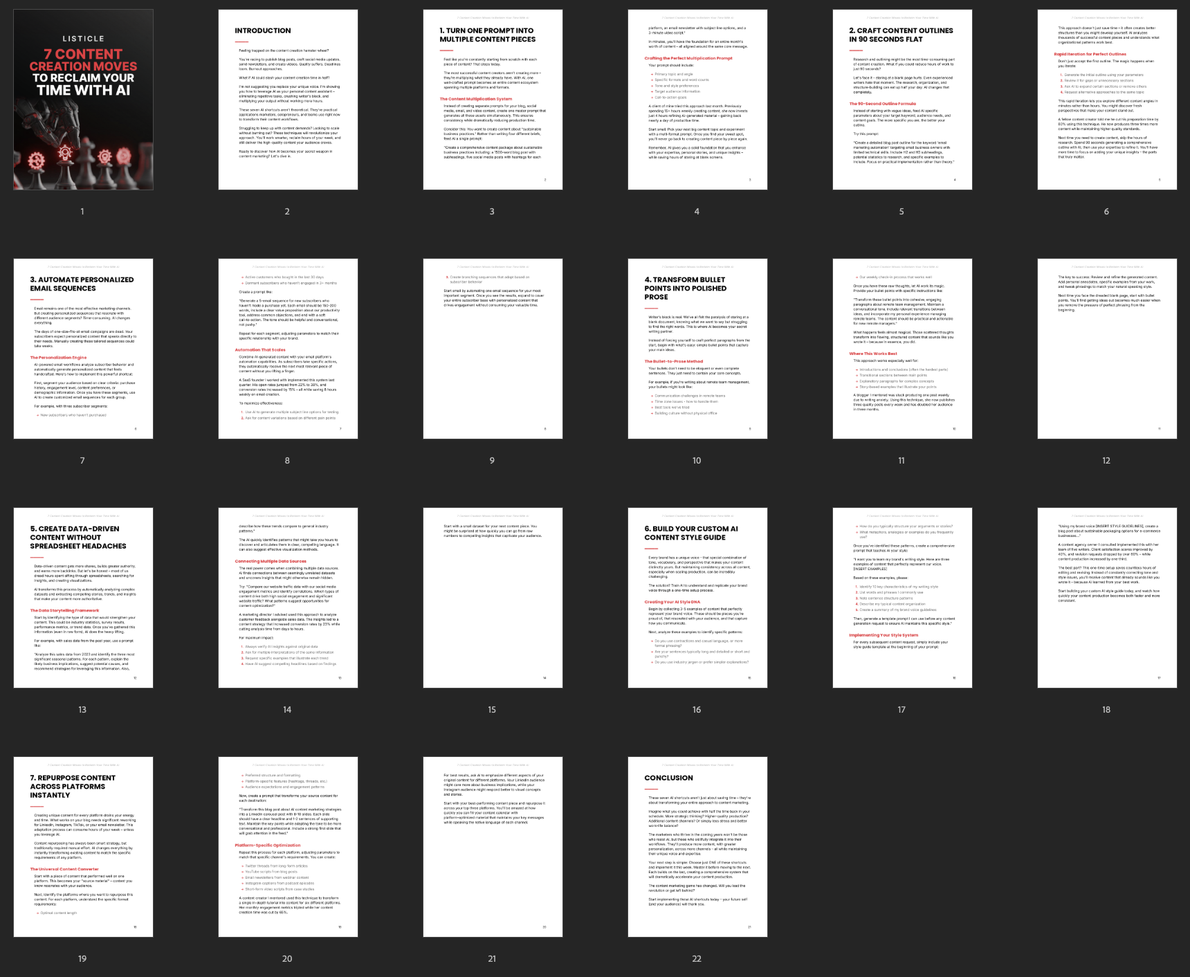 This listicle is a ready-to-use content asset designed to quickly educate, inspire, and engage your audience with skimmable, high-value insights. It’s perfect for resellers who want to offer a practical lead magnet that helps readers understand how AI can save time, reduce stress, and transform their content creation workflow without feeling overwhelmed. With a strong, clear narrative and 7 actionable shortcuts, it shows your customers how to reclaim more time each week and create better content with less effort.