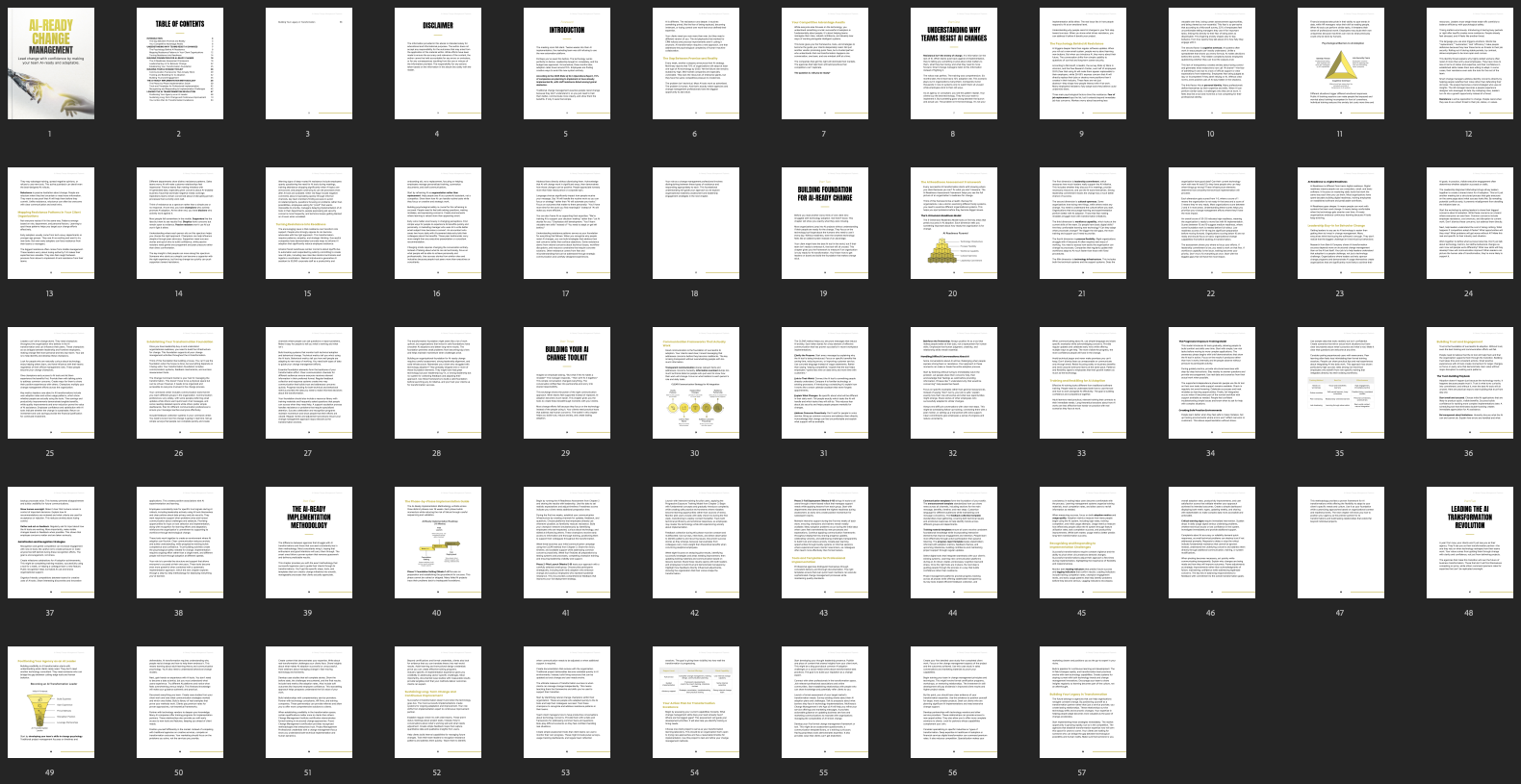 This ebook teaches your customers how to lead successful change by focusing on clear communication, team engagement, and practical planning. It offers easy-to-follow strategies for preparing teams for AI integration, reducing resistance, and creating positive momentum, empowering leaders to guide transformation with confidence and clarity.