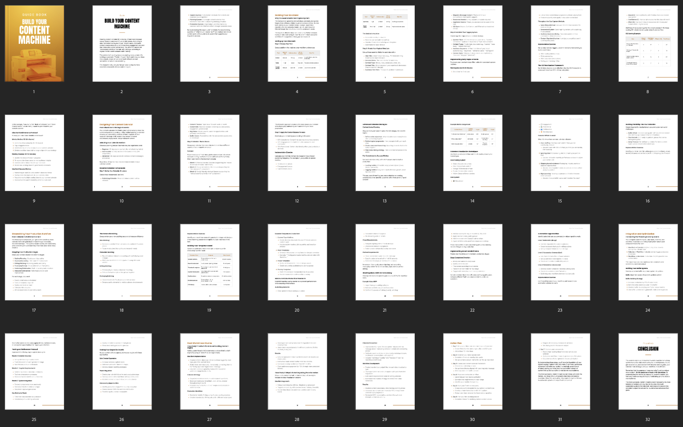 This guide helps your customers build a powerful and consistent content system by offering clear, step-by-step strategies for planning, creating, and organizing content. It provides a simple roadmap to grow their brand, reach more people, and save time through smart content management.