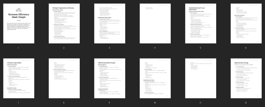 This prompt pack helps your customers boost workplace efficiency by using AI-powered strategies for organizing spaces, standardizing processes, and driving continuous improvement. It offers ready-to-use prompts to help businesses save time and work smarter every day.
