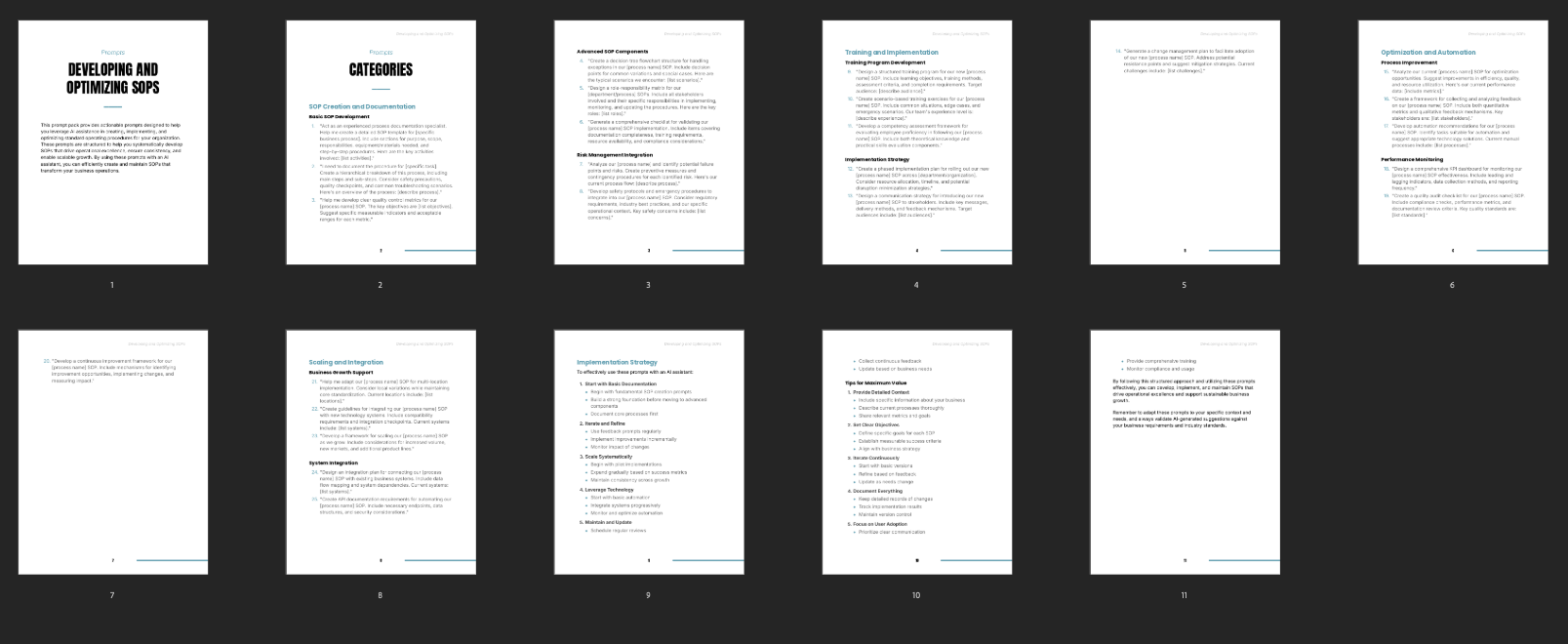 - Prompts for scaling SOPs across teams, locations, and growing operations.