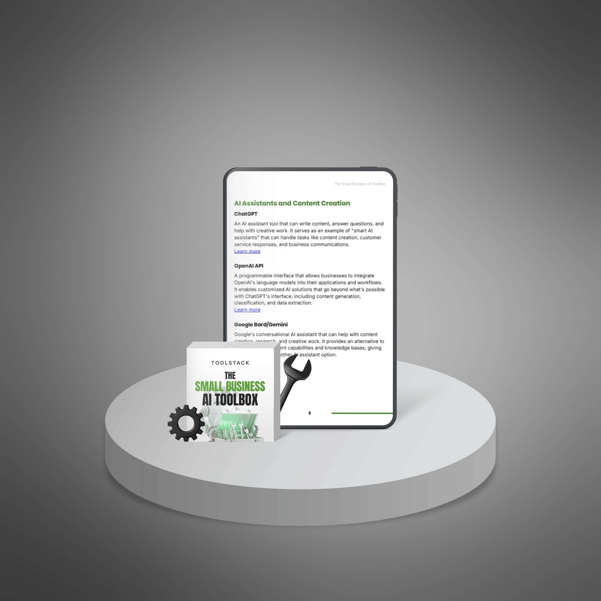 This toolstack provides your customers with a curated collection of essential AI resources to streamline small business operations. It offers a variety of tools categorized for specific tasks, from automating daily work to improving marketing and customer service, equipping your customers with everything they need to run their business more efficiently.